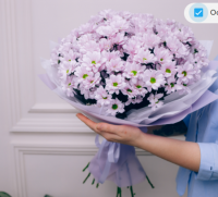 Монобукет из розовых хризантем, наполненный теплом и заботой.