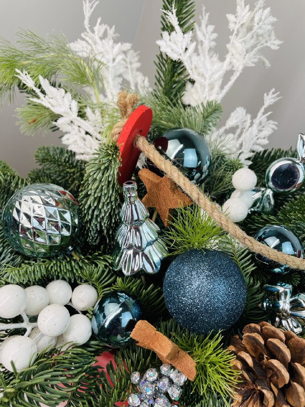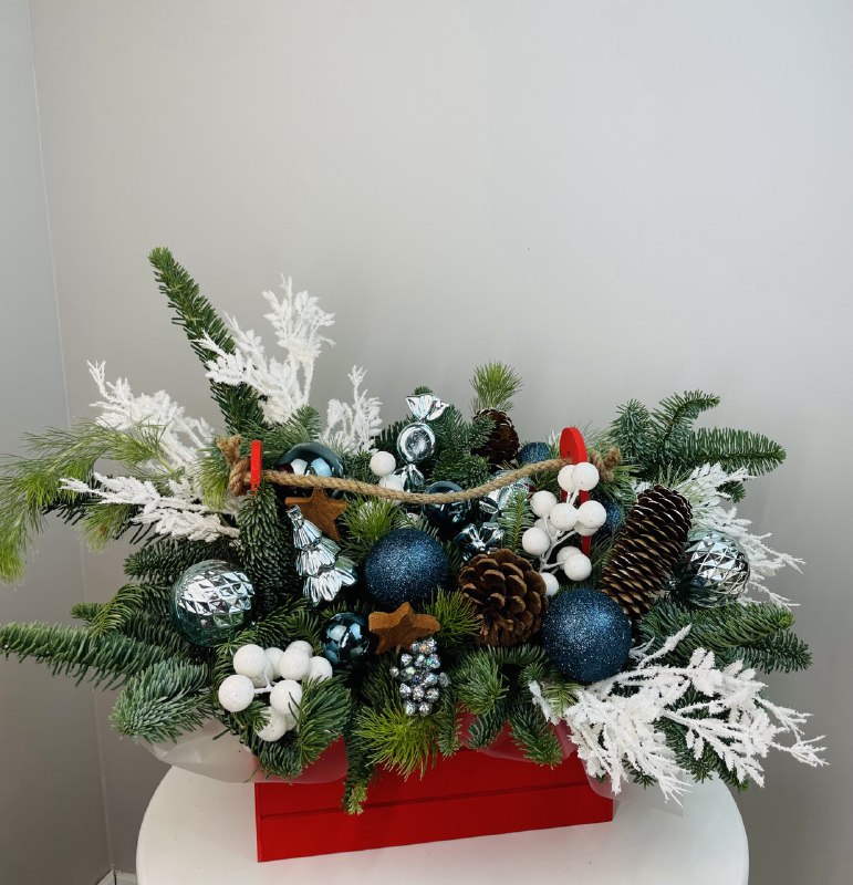 Новогодняя композиция в красном ящике